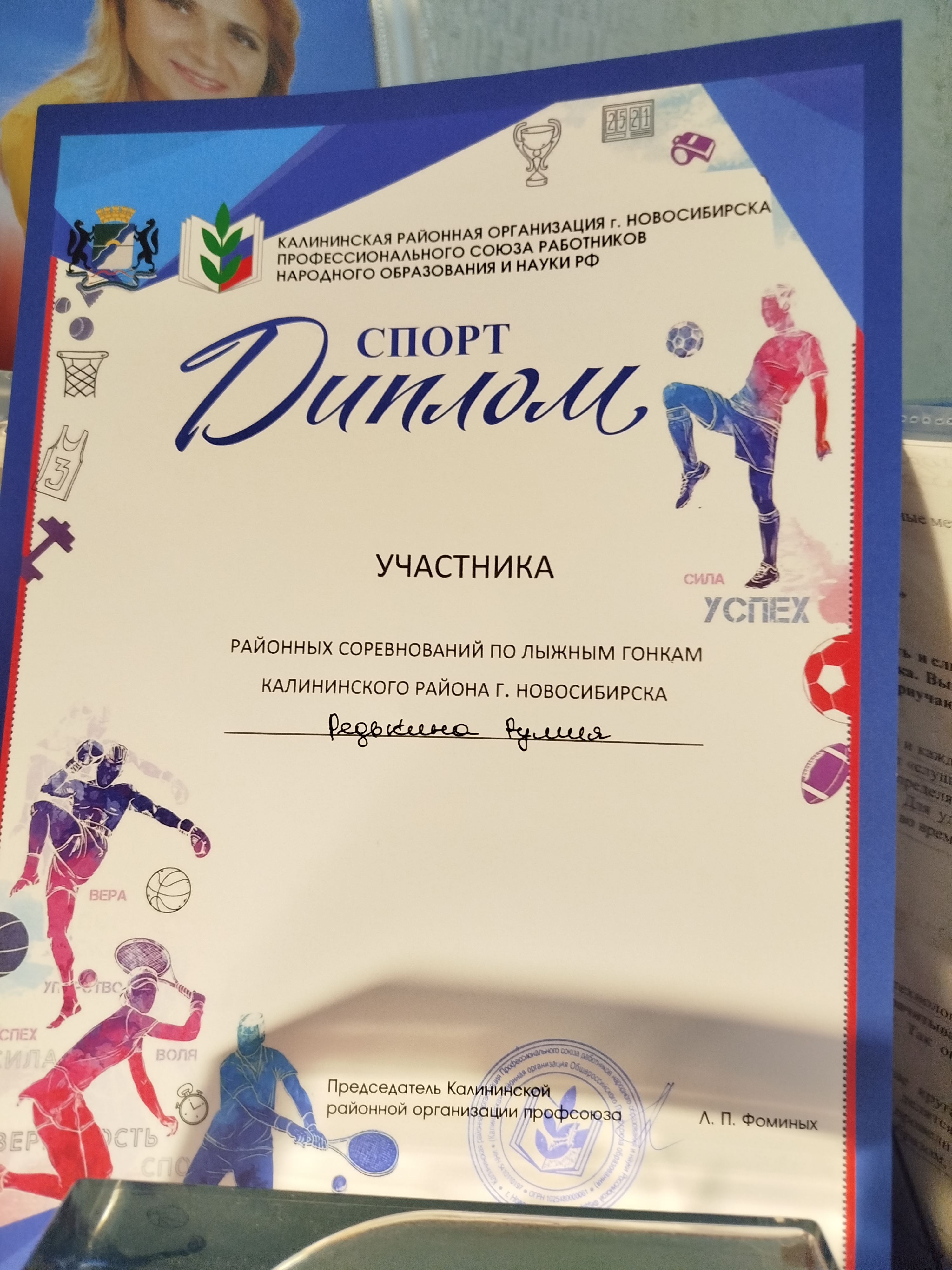 Диплом участника районных соревнований по лыжным гонкам Калининского района г. Новосибирска